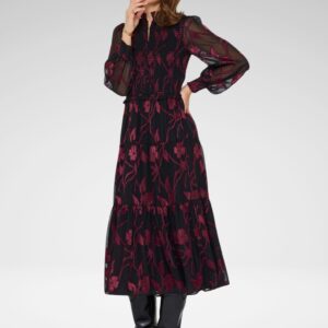Vestido Midi Negro Flores Vino