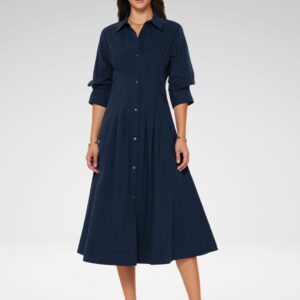 Vestido Camisero Midi Azul Marino