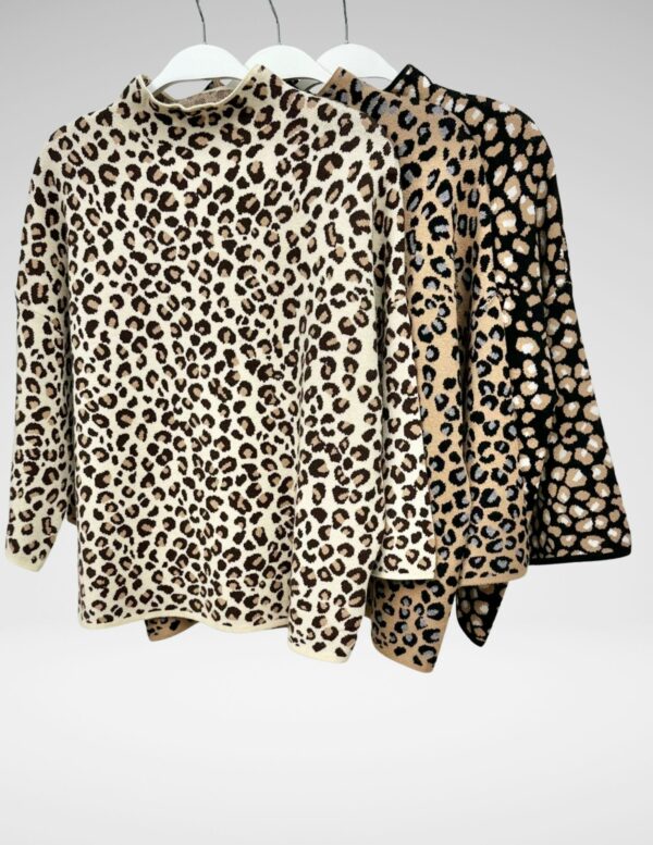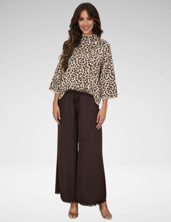 Blusa ligera con estampado de leopardo en contraste café. Corte suelto y cuello mao que aporta un toque moderno y sofisticado, ideal para combinar con jeans, faldas o looks de oficina con estilo.