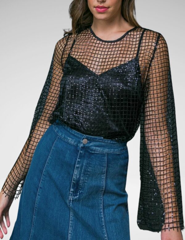 Una prenda chic y moderna que añade un toque de elegancia a cualquier outfit. Con su diseño transparente y detalles en negro, es perfecta para mostrar tu estilo personal, ideal para salidas diarias o eventos especiales. ¡Hazla parte de tu colección de moda!