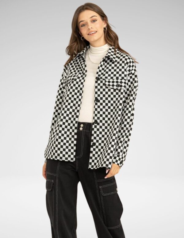 Destaca con nuestra camisola larga de estampado de cuadros en blanco y negro. Esta pieza versátil combina el estilo clásico del plaid con un diseño moderno y alargado. Confeccionada en un material suave y cómodo, ofrece un ajuste relajado ideal para cualquier ocasión. Perfecta para capas adicionales en tu atuendo, añade un toque elegante y contemporáneo a tu look diario.