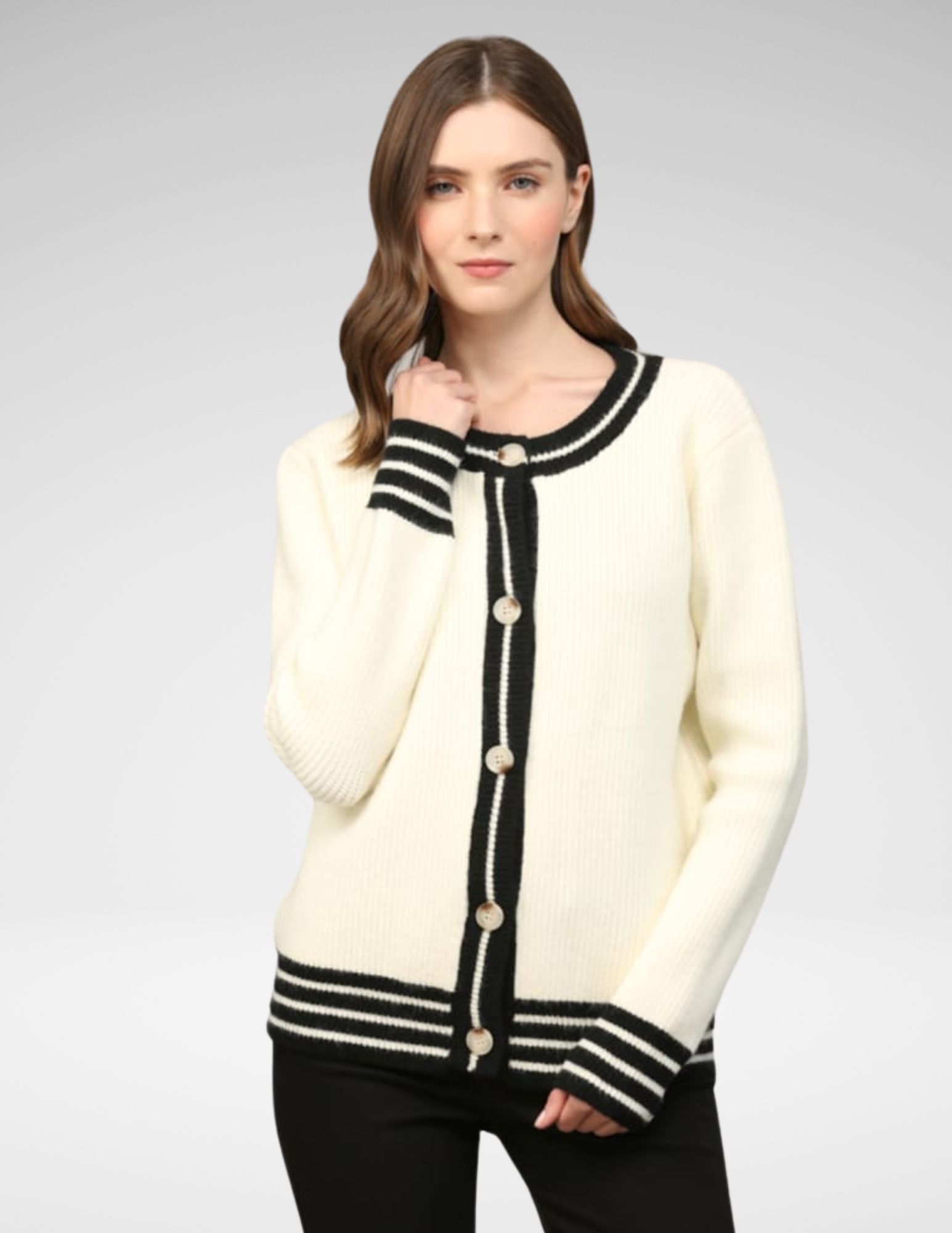 Dale un toque moderno y relajado a tus looks con este cardigan de mezcla de algodón. Su diseño texturizado y cuello redondo lo hacen perfecto para combinar con cualquier outfit, mientras que su tejido suave y transpirable te brinda comodidad durante todo el día. Ideal para un estilo casual con un giro sofisticado.