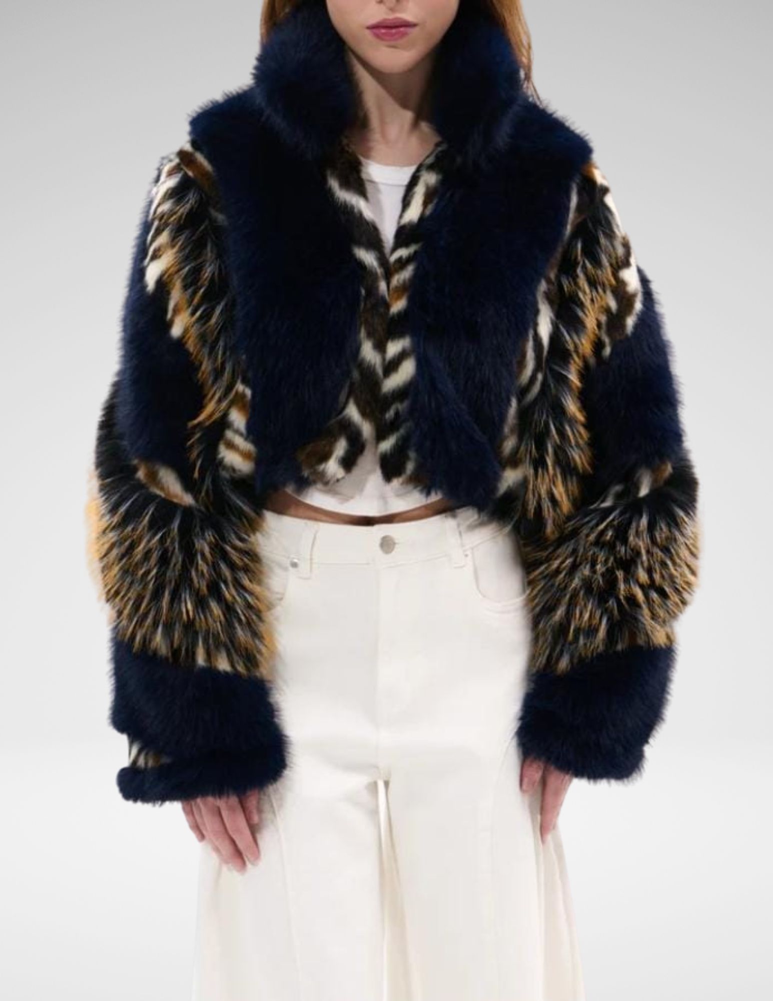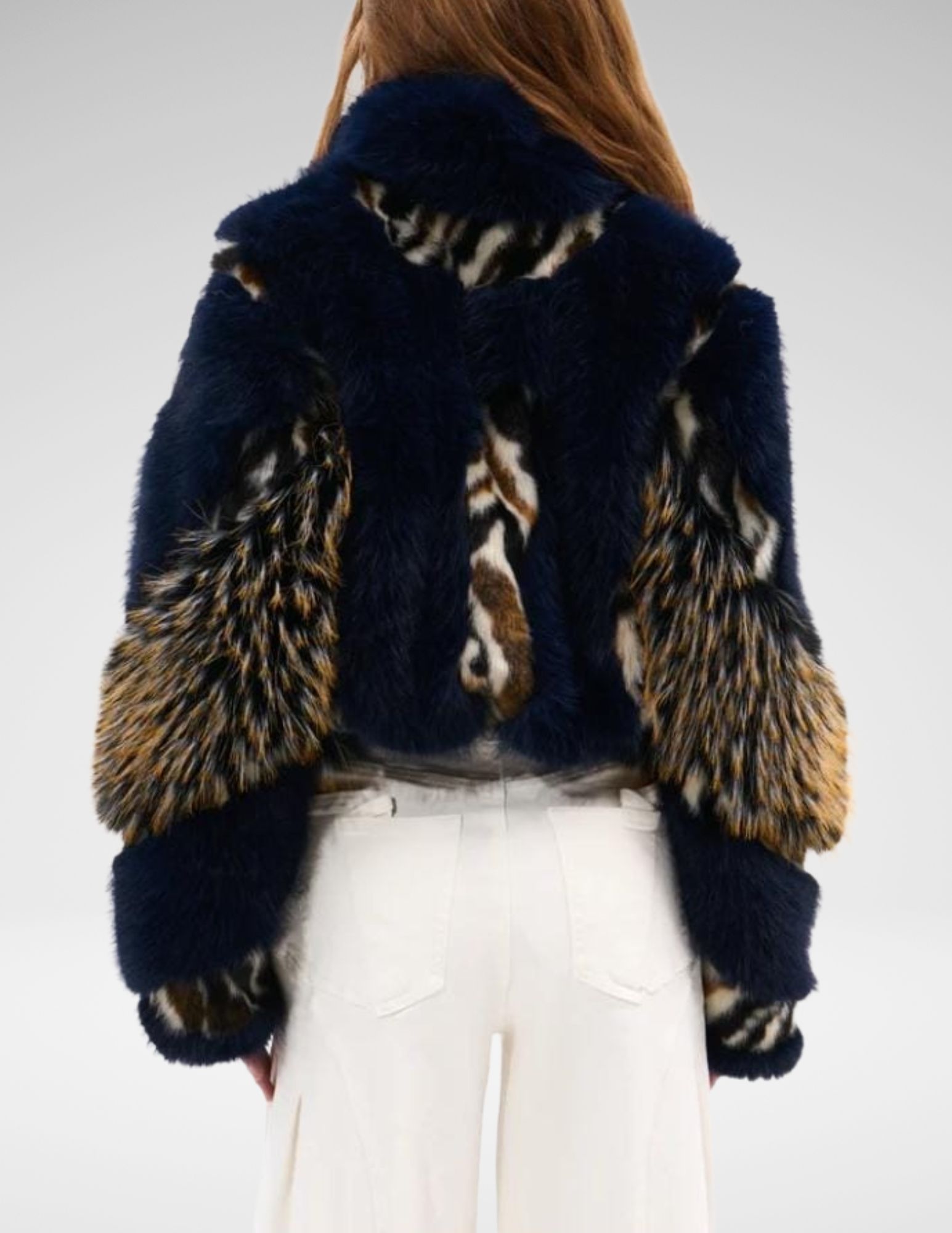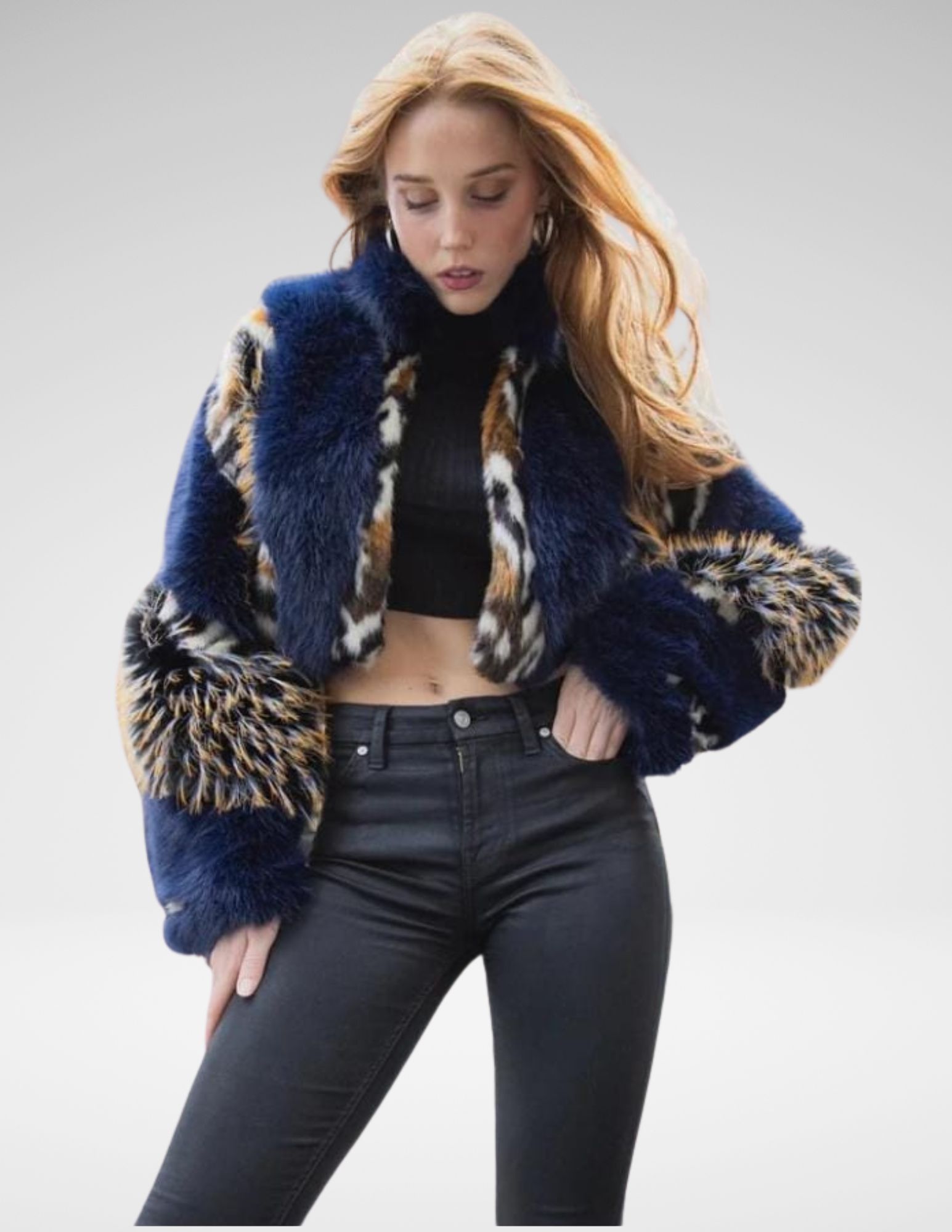 Chaqueta Crop Faux Fur Azul