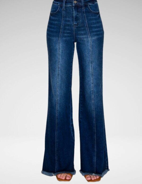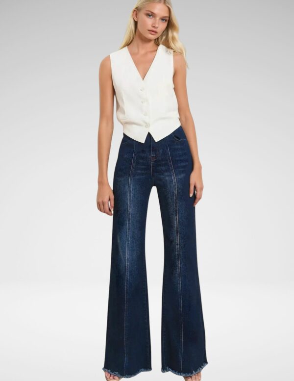 Este jean de pierna ancha redefine el estilo relajado con un toque moderno. Su cintura alta y el dobladillo deshilachado aportan un aire contemporáneo, mientras que la tela con elastano garantiza comodidad y libertad de movimiento. Ideal para looks urbanos y casuales, este denim es perfecto para quienes buscan una prenda versátil y con actitud.