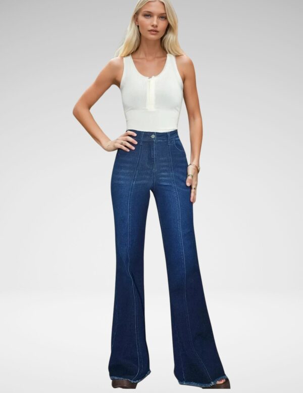 Pantalón Acampanado Denim Claro Corte Alto