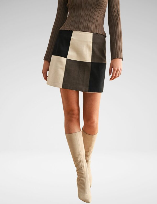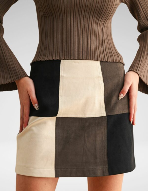Textura ante suave + parches únicos = esta falda es puro mood otoño. Combínala con suéteres gruesos, botas altas o accesorios cálidos para un look cozy pero con mucho estilo.