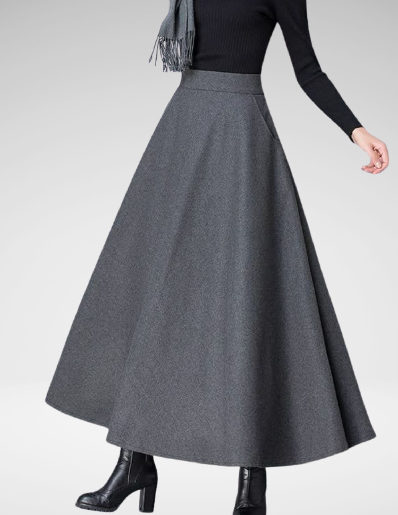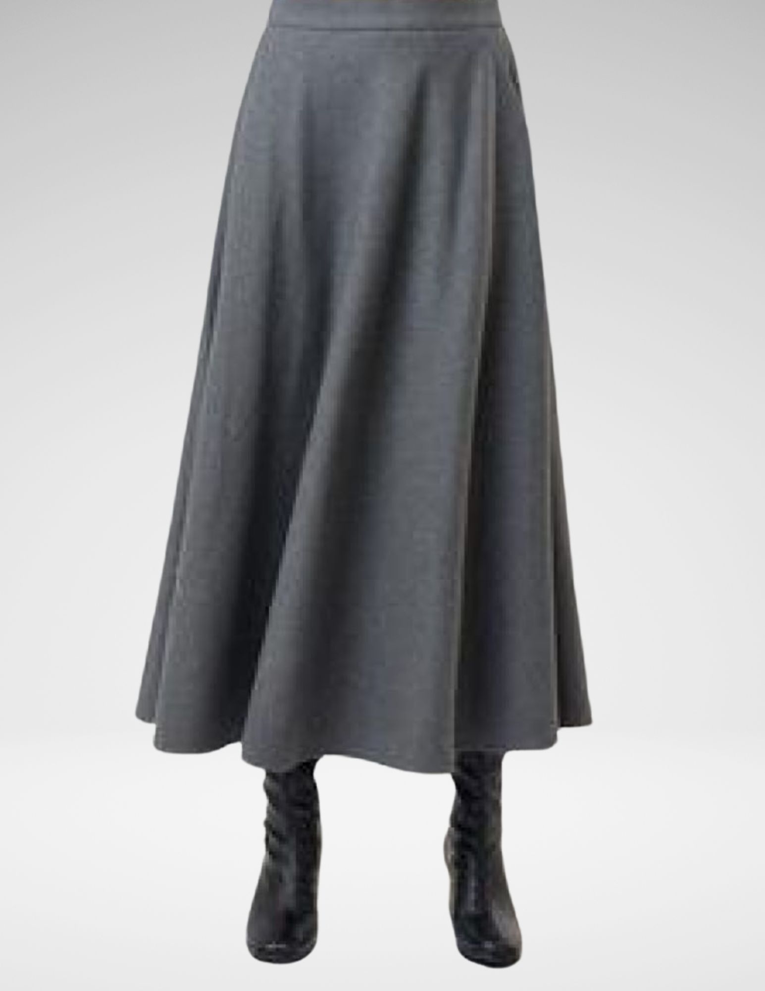 Falda larga fluida confeccionada con caída swing que da movimiento. Diseño atemporal que combina perfecto con suéteres chunky o camisas estructuradas para lograr looks cómodos pero elegantes. Textura suave, ideal para estaciones frescas.