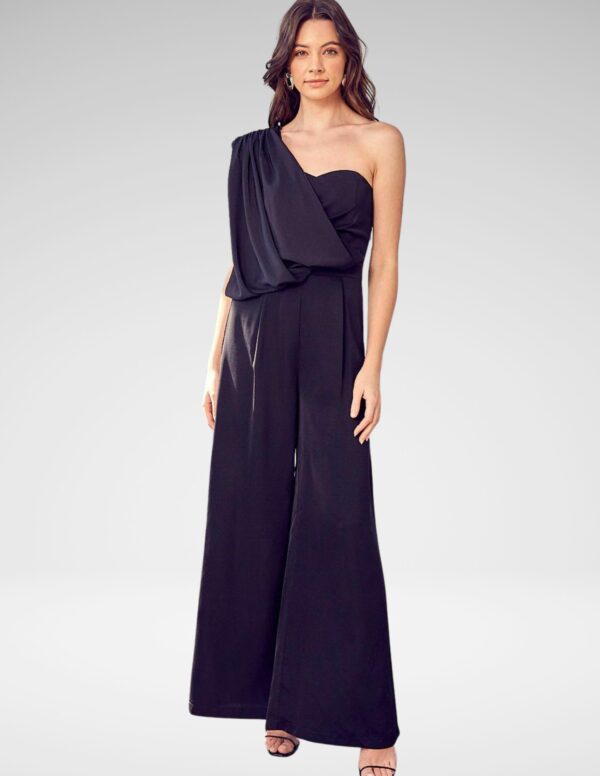 Este mono asimétrico es la combinación perfecta de elegancia y estilo moderno. Con un diseño de un solo hombro y un drapeado que le añade un toque sofisticado, es ideal para eventos especiales o una noche fuera. Su corte ajustado y tela fluida garantizan comodidad sin perder glamour. ¡Una prenda imprescindible para destacar con un look chic y moderno!