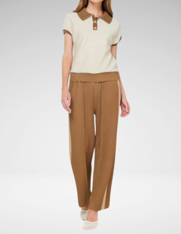 Este conjunto combina una blusa delicada con cortes femeninos y detalles refinados junto con un pantalón coordinado para lograr una estética armoniosa. La blusa aporta textura y sofisticación, mientras que el pantalón completa el look con caída elegante y equilibrio. Perfecto para el día a día con un toque chic o una reunión especial donde quieres irradiar estilo sin esfuerzo.